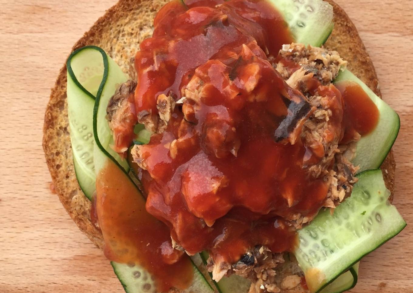 - To serve simply assemble the cucumber first then the mash up sardine then drizzle generously the sardine tomato Chili sauce and enjoy