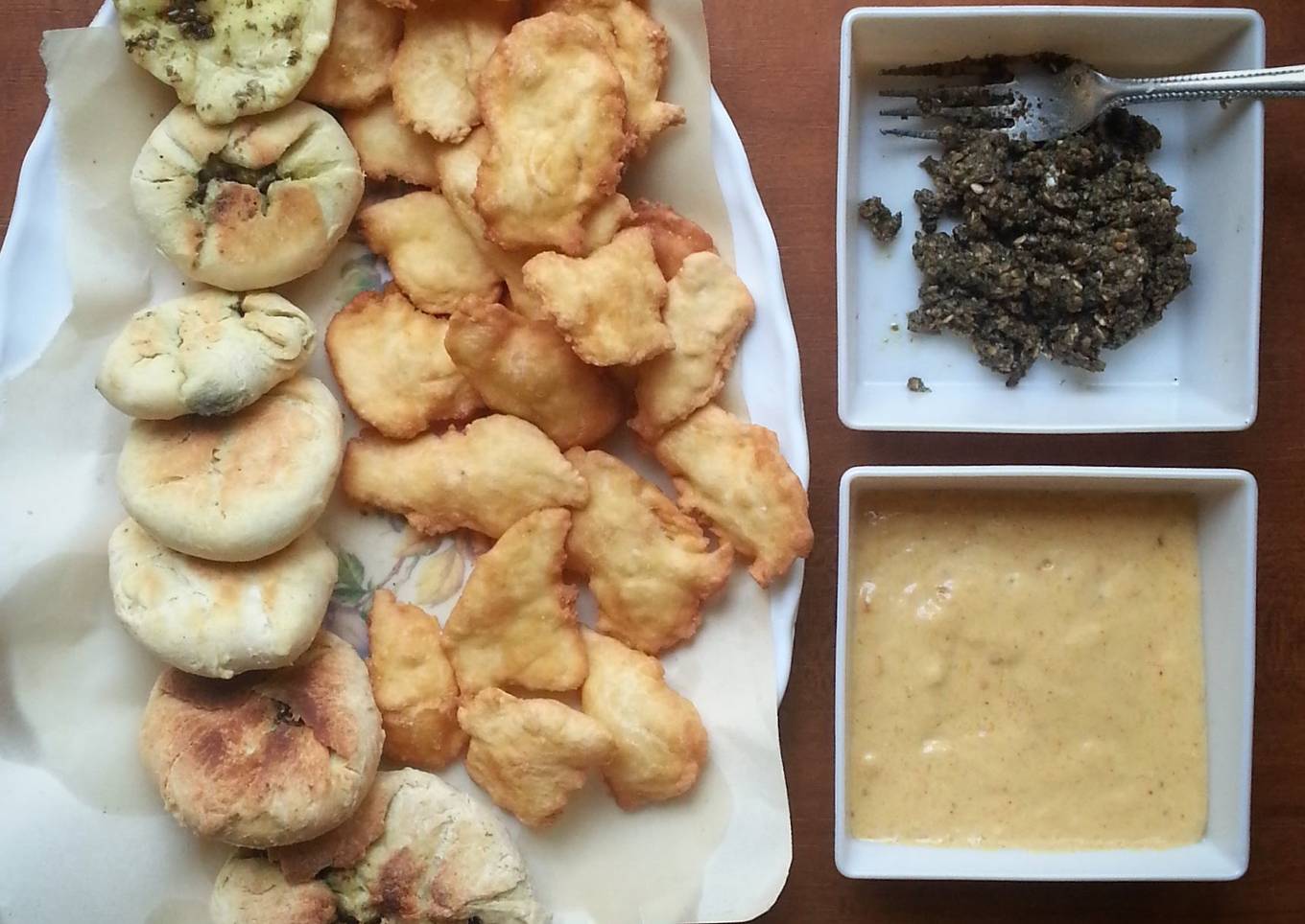 Spicy mango dipping and homemade bread dips