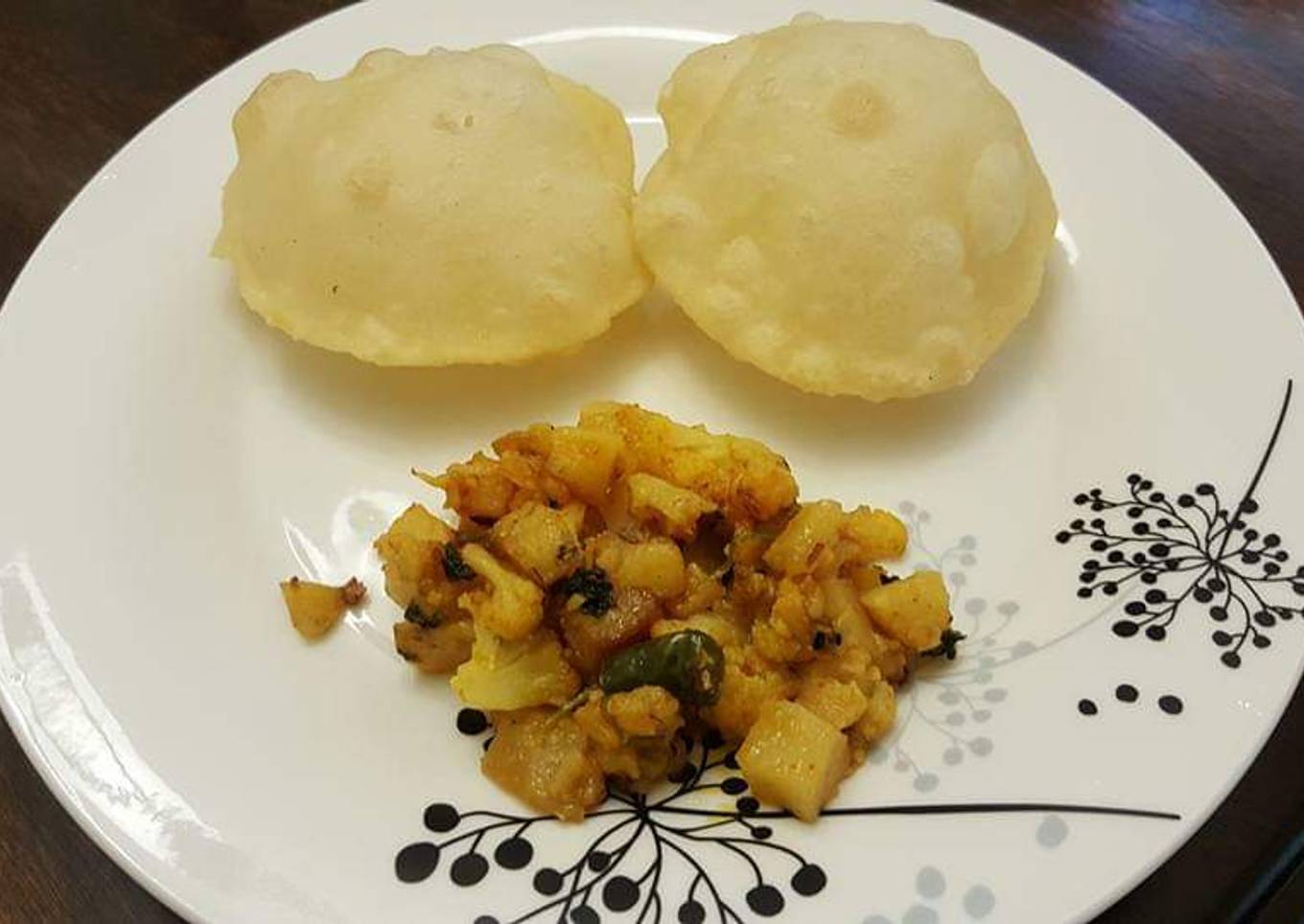 Luchi is a traditional Bengali deep fried puris made with all purpose flour. The difference between Luchi and Puri is that puris are North Indian style and made with wheat flour.Traditional Luchi is mostly served with begun bhaja(brinjal fry),cholar dal, dum aloo,sookhi aloo subzi or kosha mangsho(dry mutton curry).