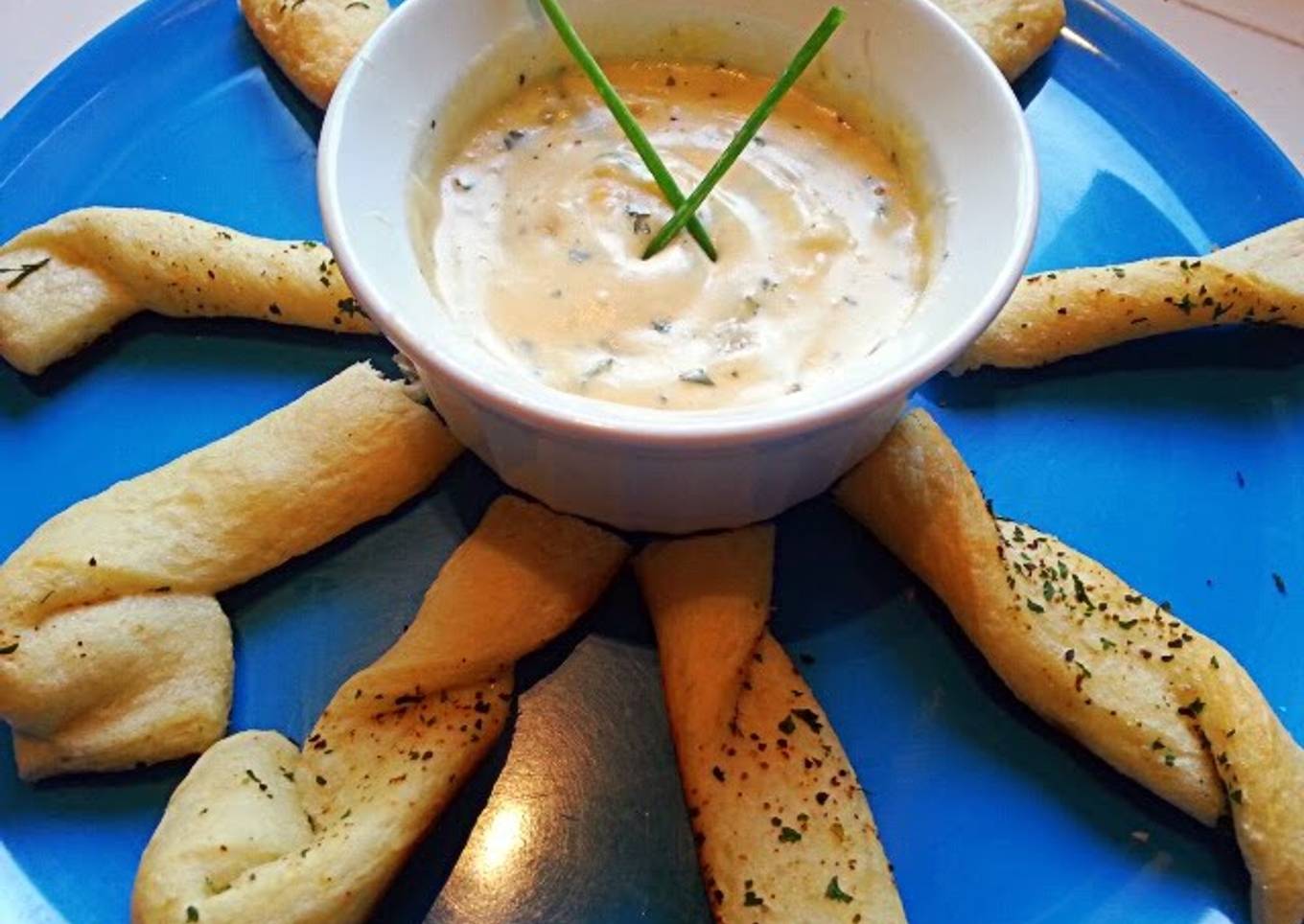 - roll out garlic bread sticks, add seasonings as you like, twist n bake as directed