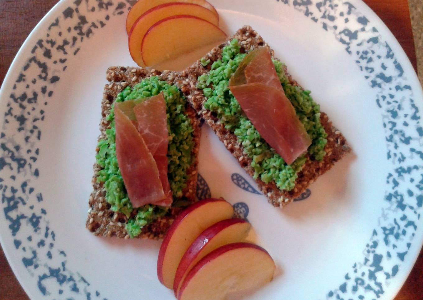 Fava Bean Spread on a Flat Bread with Prosciutto
